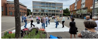 Da Margret und John uns nach den Schulferien nicht mehr als Trainer zur Verfügung stehen, übernehmen Piotr und Rita die Gruppe. Hier ist Piotr auch spontan eingesprungen und hat den Anwesenden beim Workshop ein paar Schritte im Discofox beigebracht.
